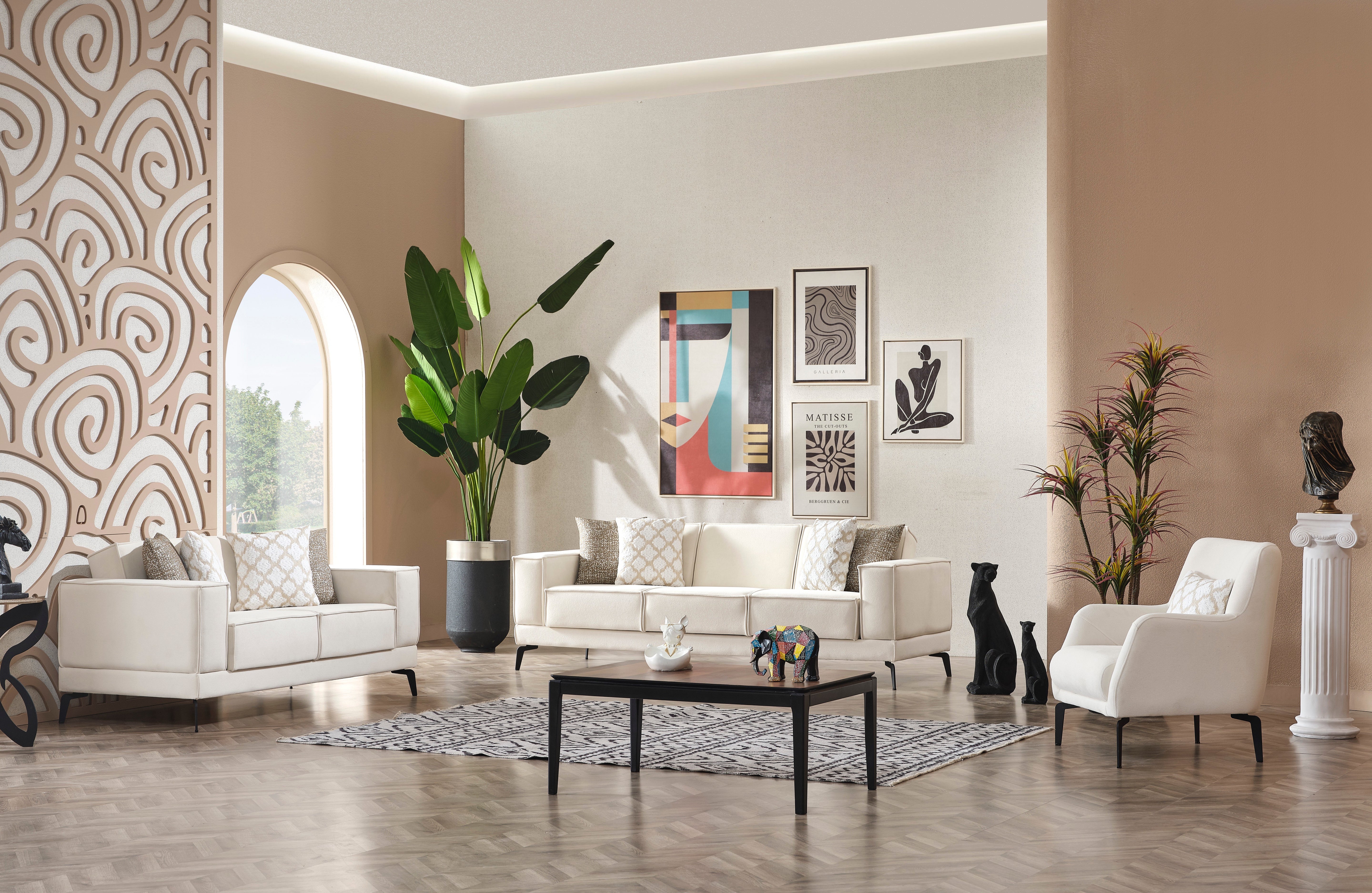The Forest Cream Sofa Love Storage Sleeper Set is a stylish and versatile addition to any living space. Upholstered in a soft cream fabric, it features a modern design with clean lines. The sofa easily converts into a comfortable sleeper, perfect for guests, while integrated storage beneath the cushions offers a convenient space for blankets and pillows. Its neutral tone complements a variety of decor styles, making it both practical and chic.